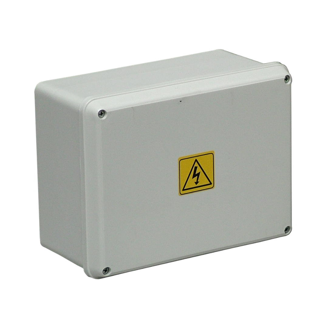 Cajas de paso estancas, de superficie, doble aislación, clase II. Aptas para intemperie y resistentes a la luz solar (radiación ultravioleta). Estancas al agua y al polvo, IP65. Resistencia al impacto IKo8. Con tornillos de acero imperdibles.