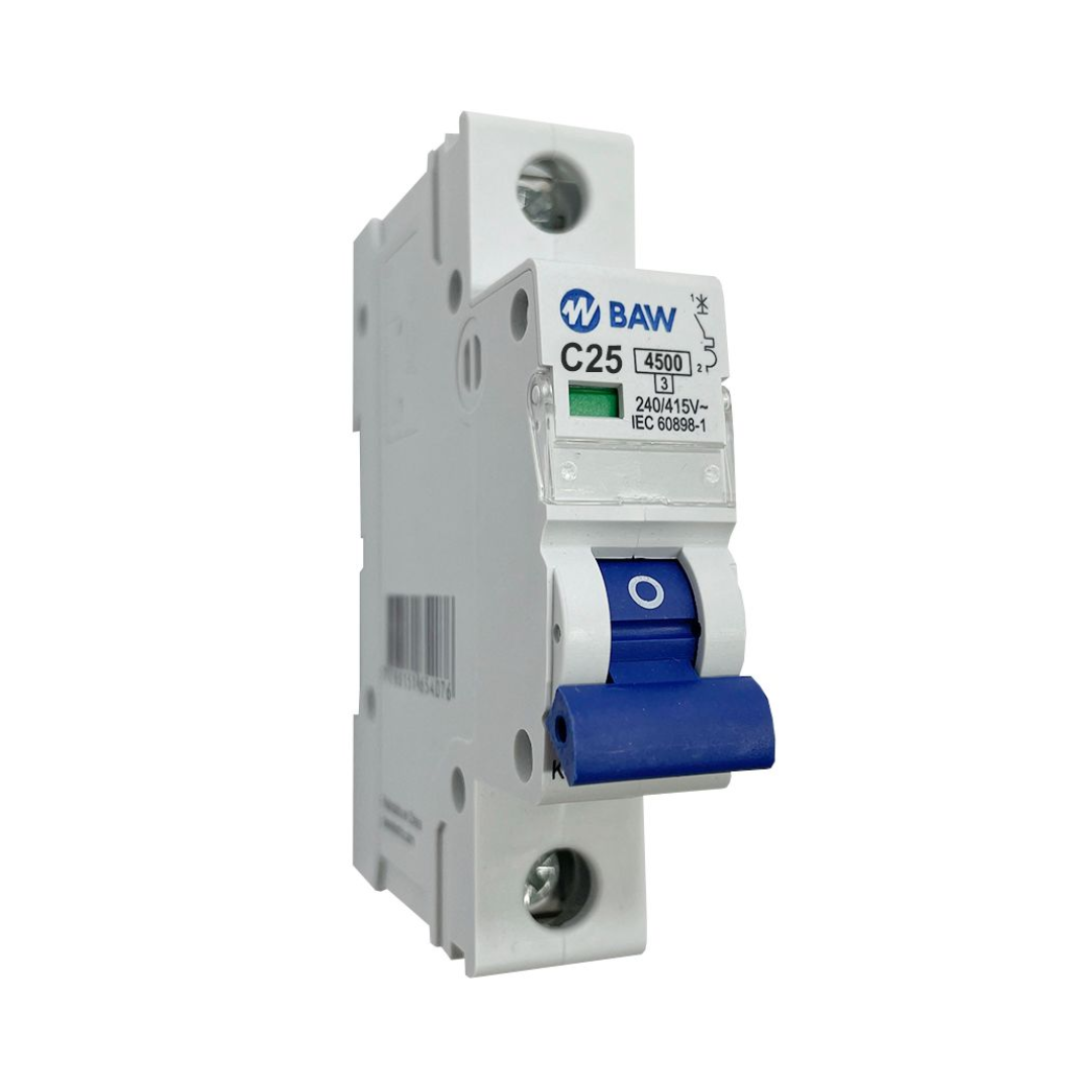 Llave termomagnética 1×25 Amp – 4,5Ka. Curva C – Baw